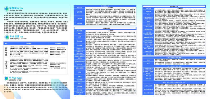 學(xué)校設(shè)置高起專、高起本、專升本、研究生(MBA)等多種學(xué)歷層次,開設(shè)管理、經(jīng)濟、教育、理工、建筑、石油、化工、醫(yī)藥、農(nóng)林等類60多個專業(yè)。